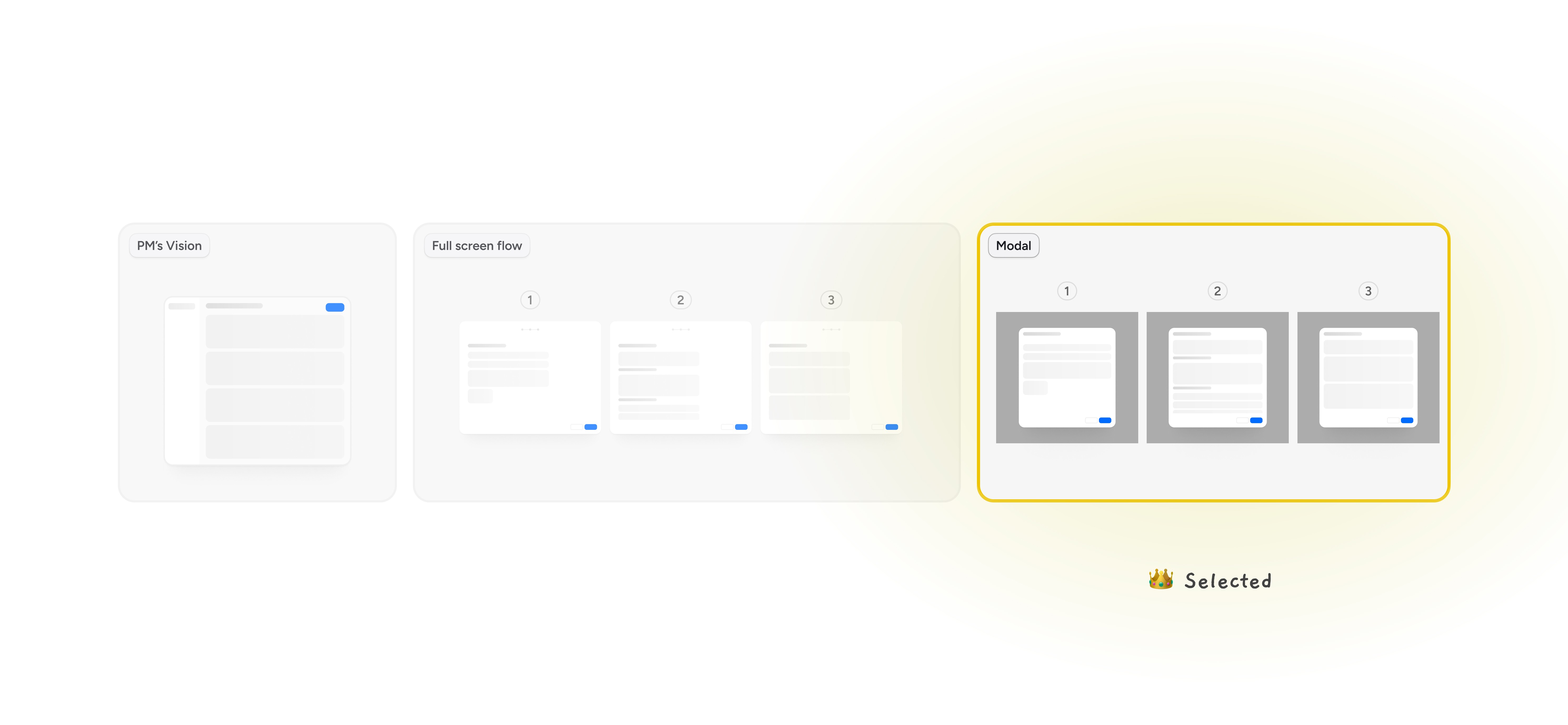 As discovery progressed, I interviewed marketing/sales, reviewed support ticket patterns, and spoke with internal streamers to understand how sellers actually prepare for live shows. I used those inputs—and competitive research on progressive disclosure and dashboard entry points—to test whether scheduling was “setup” or a lightweight commitment moment. We reframed the problem with the PM: sellers needed to lock time early, avoid heavy upfront requirements, and keep Studio as an execution workspace. I learned that clarity often comes from naming what not to build—especially when user mental models conflict with an initial “ideal flow.”